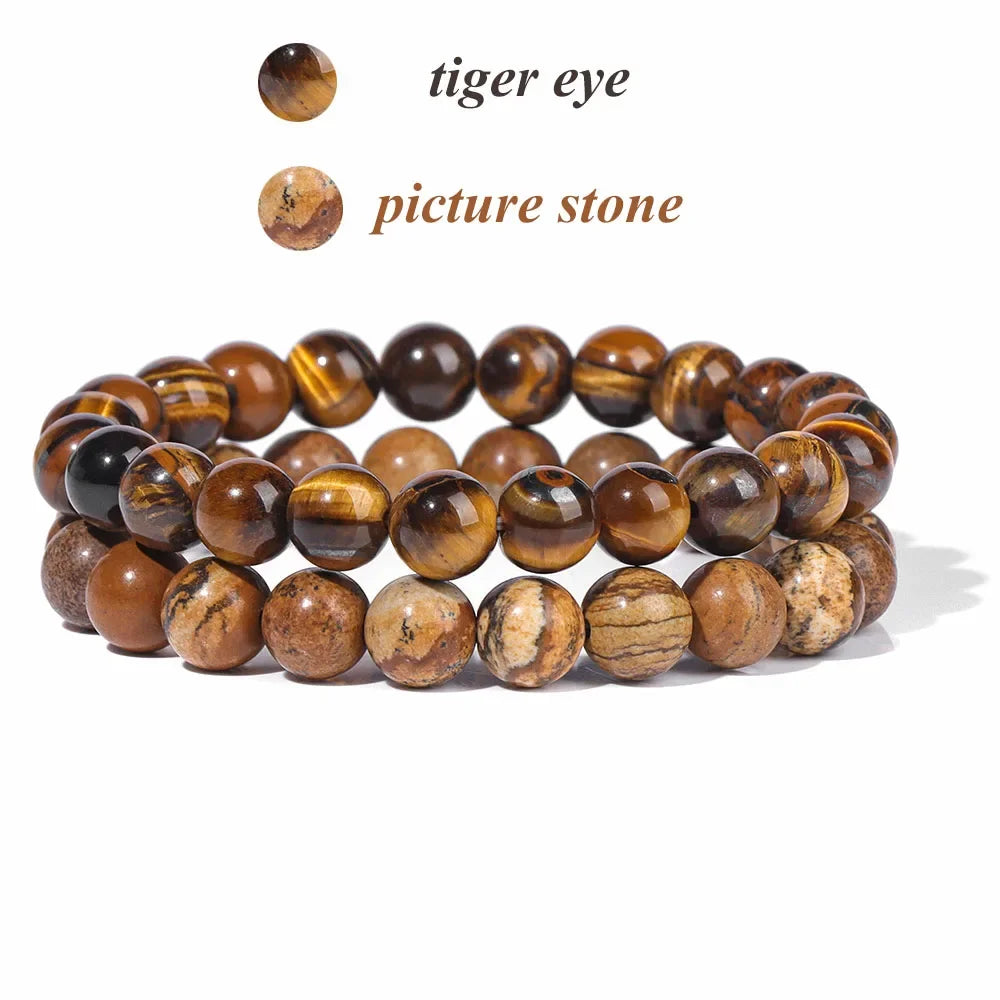 2Pcs Colorful Natural Stone Bead Bracelet Set 8MM Natural Agates Turquois Amethysts Quartzs Gem Stretch Bangle Jewelry Gift