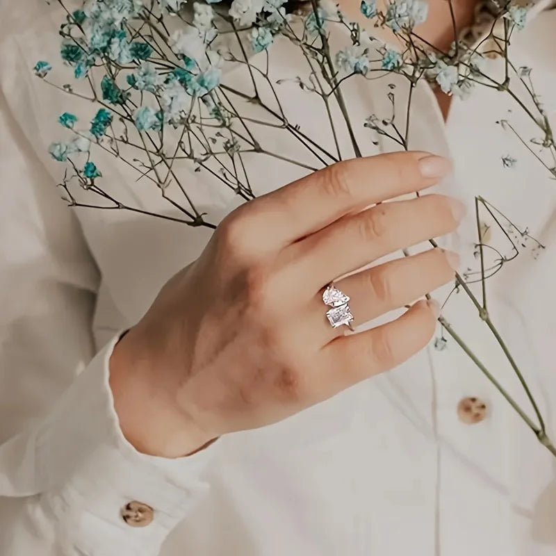 3CT 925 Sterling Silver Cushion Pear Cut Moissanite Engagement Ring, Moissanite Ladies Promise Wedding Band