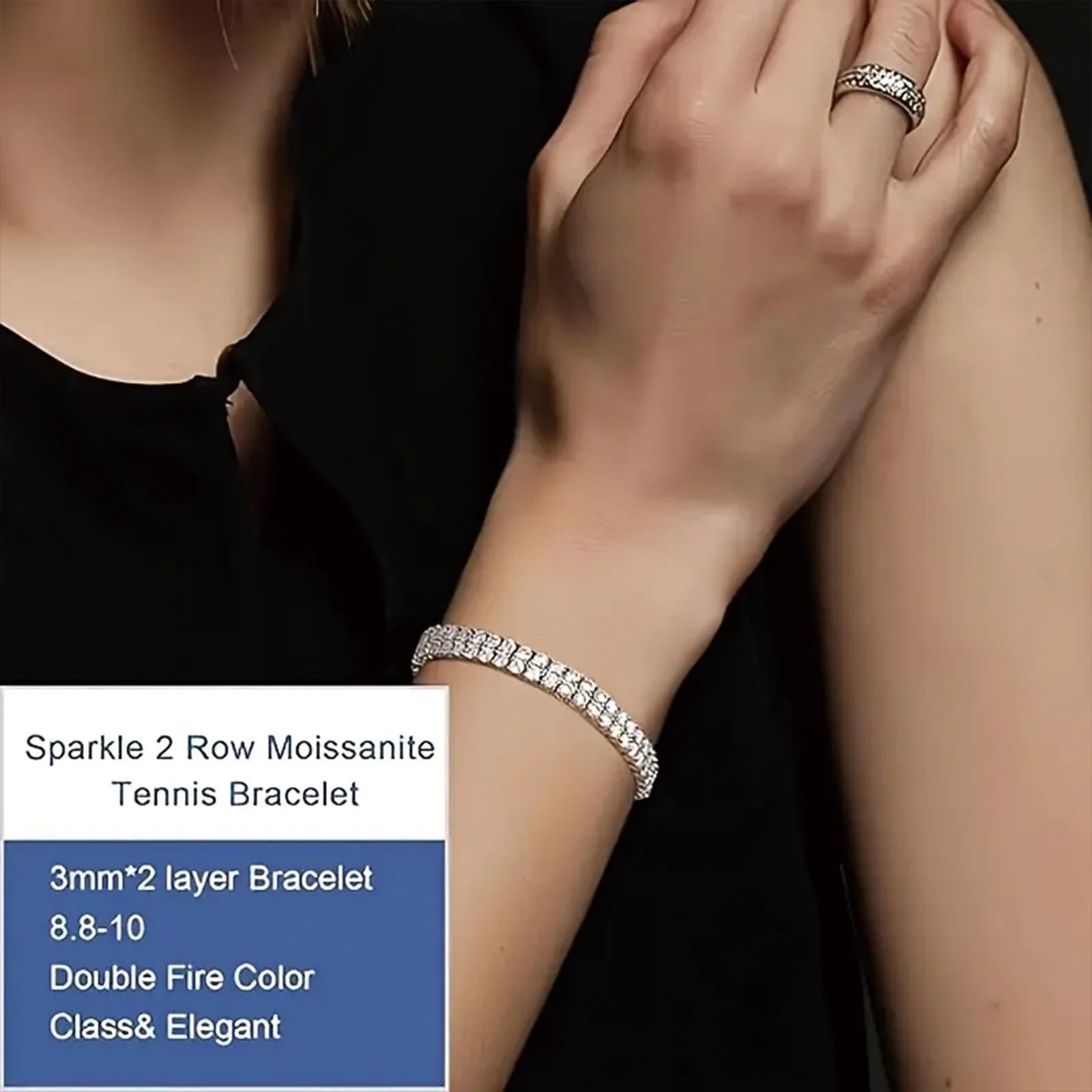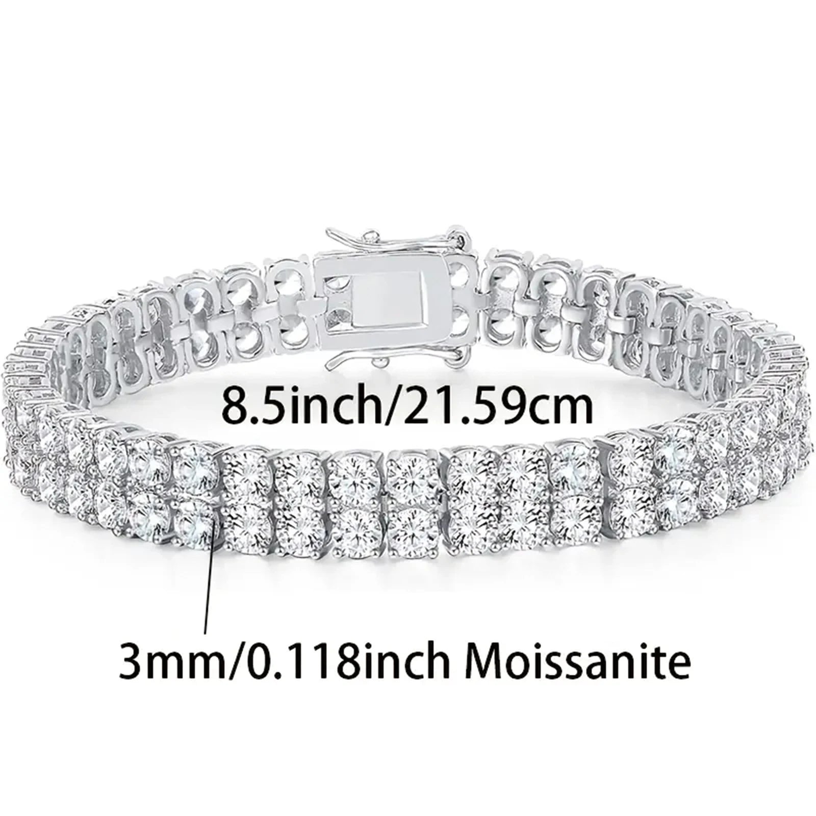 925 Silver 3mm Double Layered Moissanite Tennis Bracelet Double Layered Lab Cultured Diamonds Bracelet 925 Sterling Silver Tenni