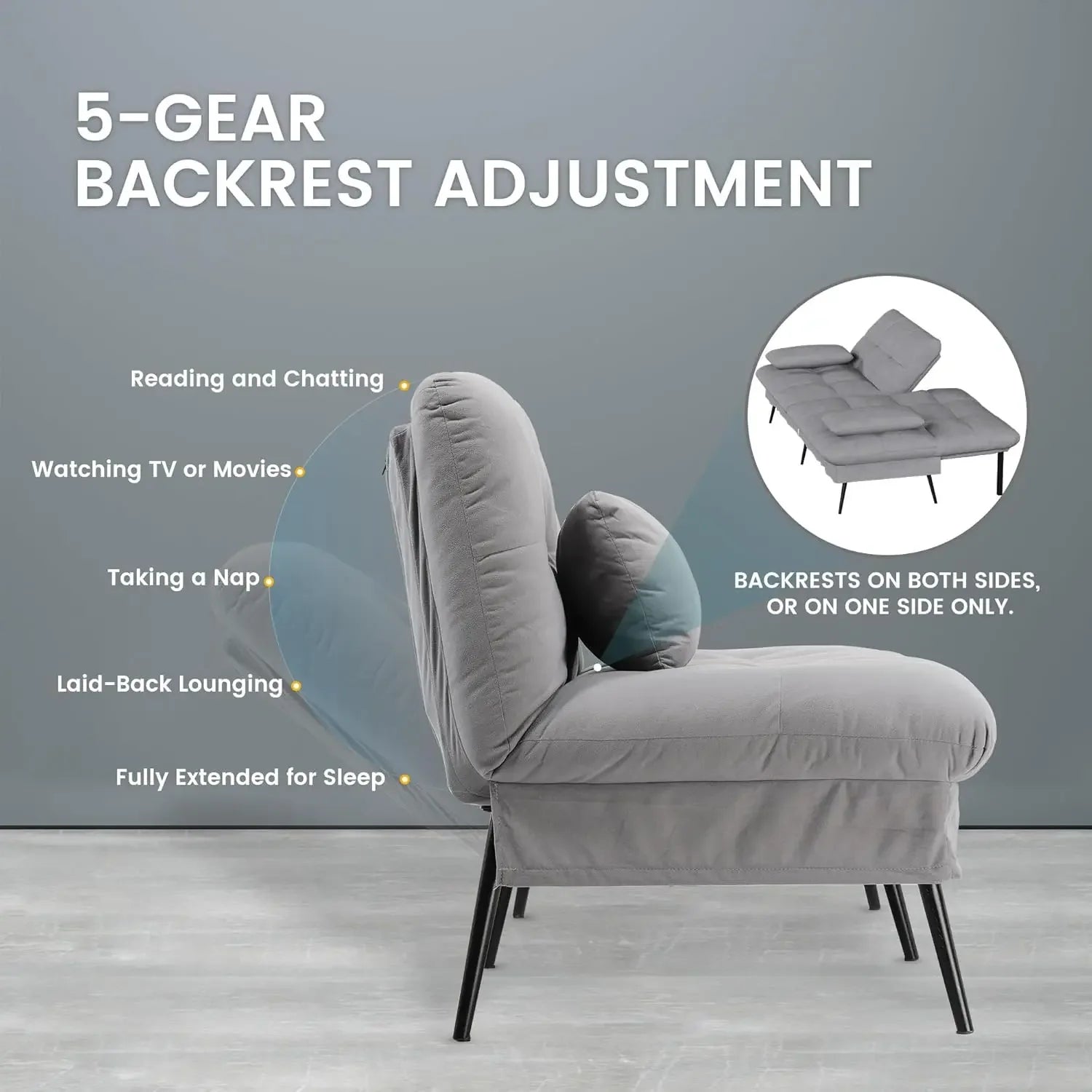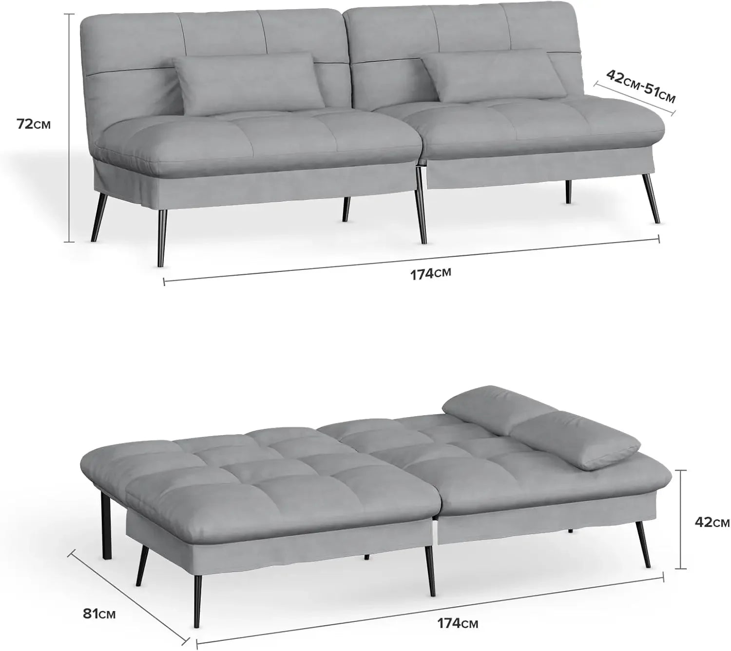 Convertible Sofa Bed,68″Fabric Couch with Adjustable Backrest,Loveseat Recliner Sleeper Living Room Furniture futon Set,Grey
