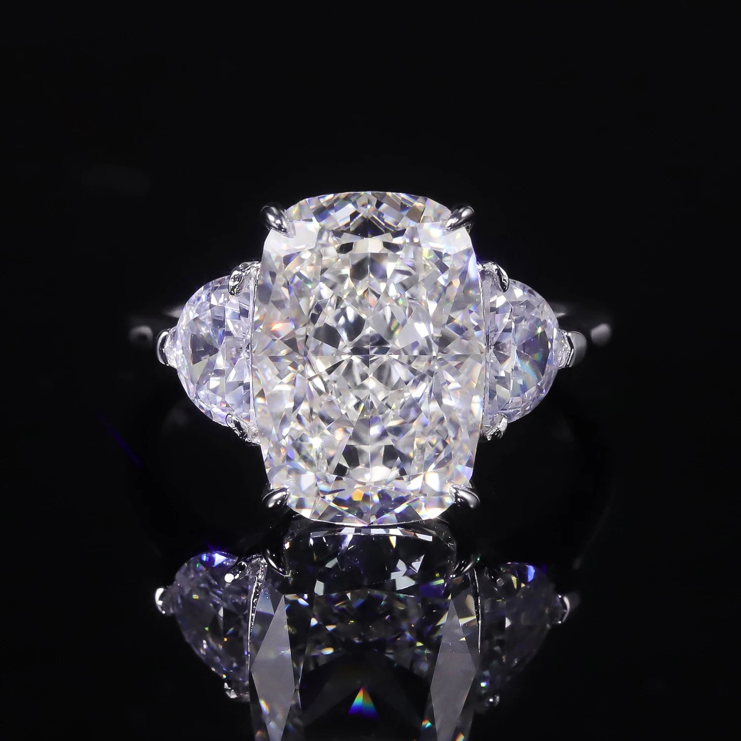 GEM'S BALLET Diamond-fire CZ- Fancy Light Yellow Three Stone Engagement Ring 925 Sterling Silver Statement Rings For Women