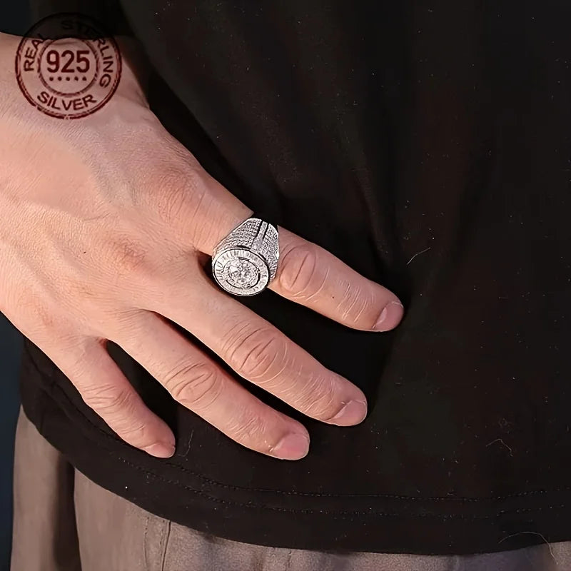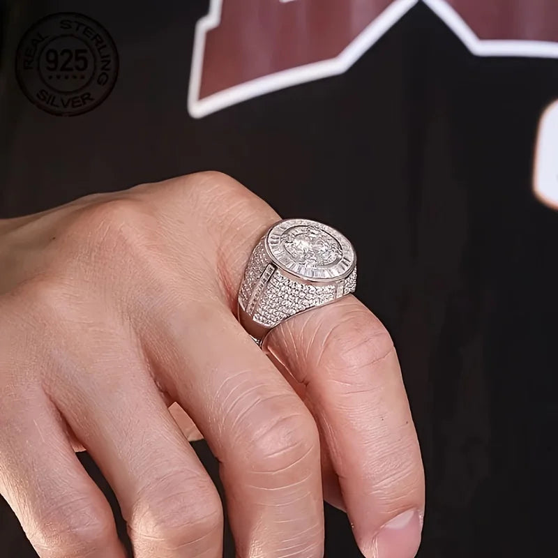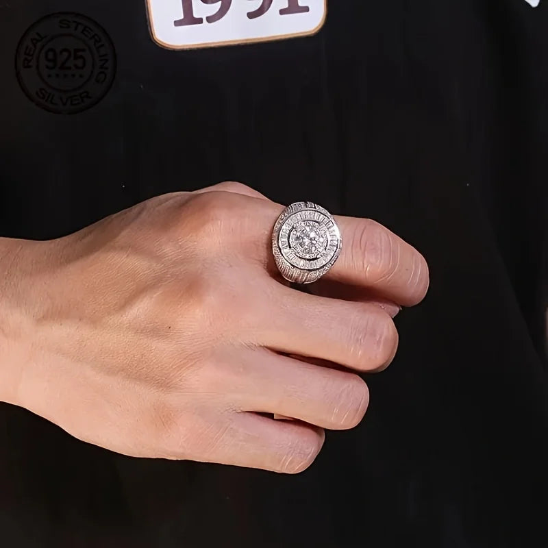 Luxury Men's Solid 925 Sterling Silver Circular Baguette Solitaire Ring Icy Large Pinky Rings Hip Hop Jewelry Gift For Husban